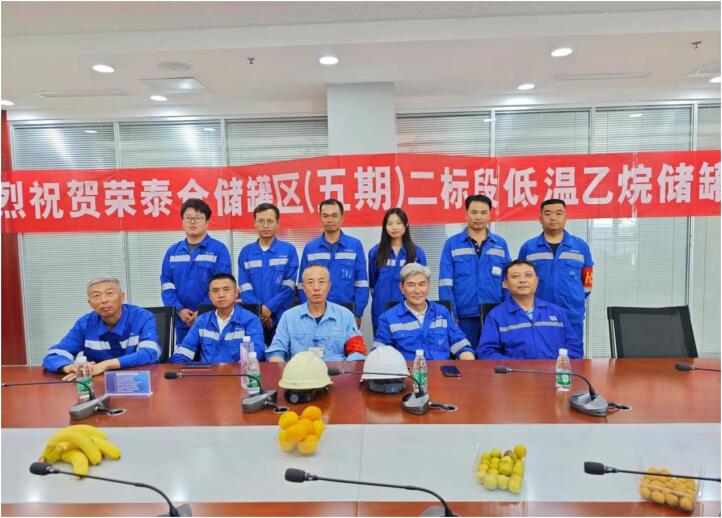 ---The first low-temperature ethane storage tank of Lianyungang Rongtai Phase V EPC project has been successfully topped up